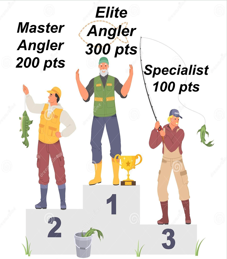 Points vary by fish type and size. Collect the most points to claim the highest prize level.